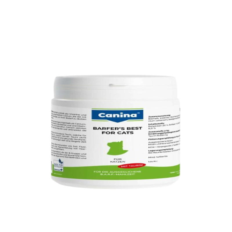 BARFER´S BEST për mace përmban edhe aminoacidin taurinë, i cili është jetik për macet, pasi ato nuk mund ta prodhojnë vetë në sasi të mjaftueshme. Taurina është thelbësore për funksionimin e shëndetshëm të zemrës dhe për mbështetjen e shikimit. Mungesa e taurinës për një periudhë të gjatë mund të çojë në probleme serioze, përfshirë humbjen e shikimit.
