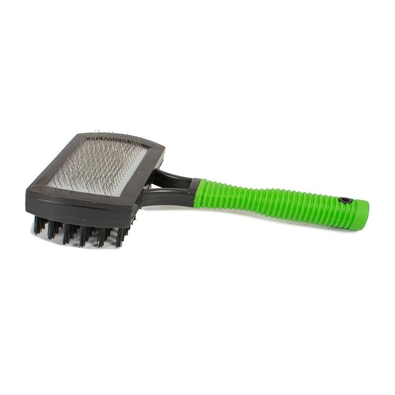 Double sided slicker brush/nylon bristle with rubber soft grip