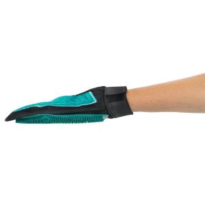Pet Care Hand Massage është një mjet praktik dhe shumëfunksional për kujdesin dhe pastrimin e kafshëve shtëpiake. Ai ka një anë masazhuese me gome për të stimullluar qimet dhe lëkurën e kafshës, duke ofruar masazh relaksues dhe përmirësim të qarkullimit të gjakut. Ana tjetër është për heqjen e qimeve në material tekstili, e cila lejon largimin e qimeve nga divanet, makinat dhe sipërfaqe të tjera ku grumbullohen qimet.