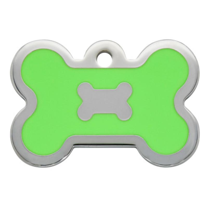 Chrome with Neon Green Epoxy Large Bone Quick-Tag