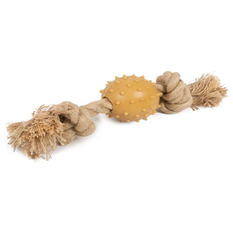 NATURAL RUBBER BALL WITH HEMP TIPS AND ROPE